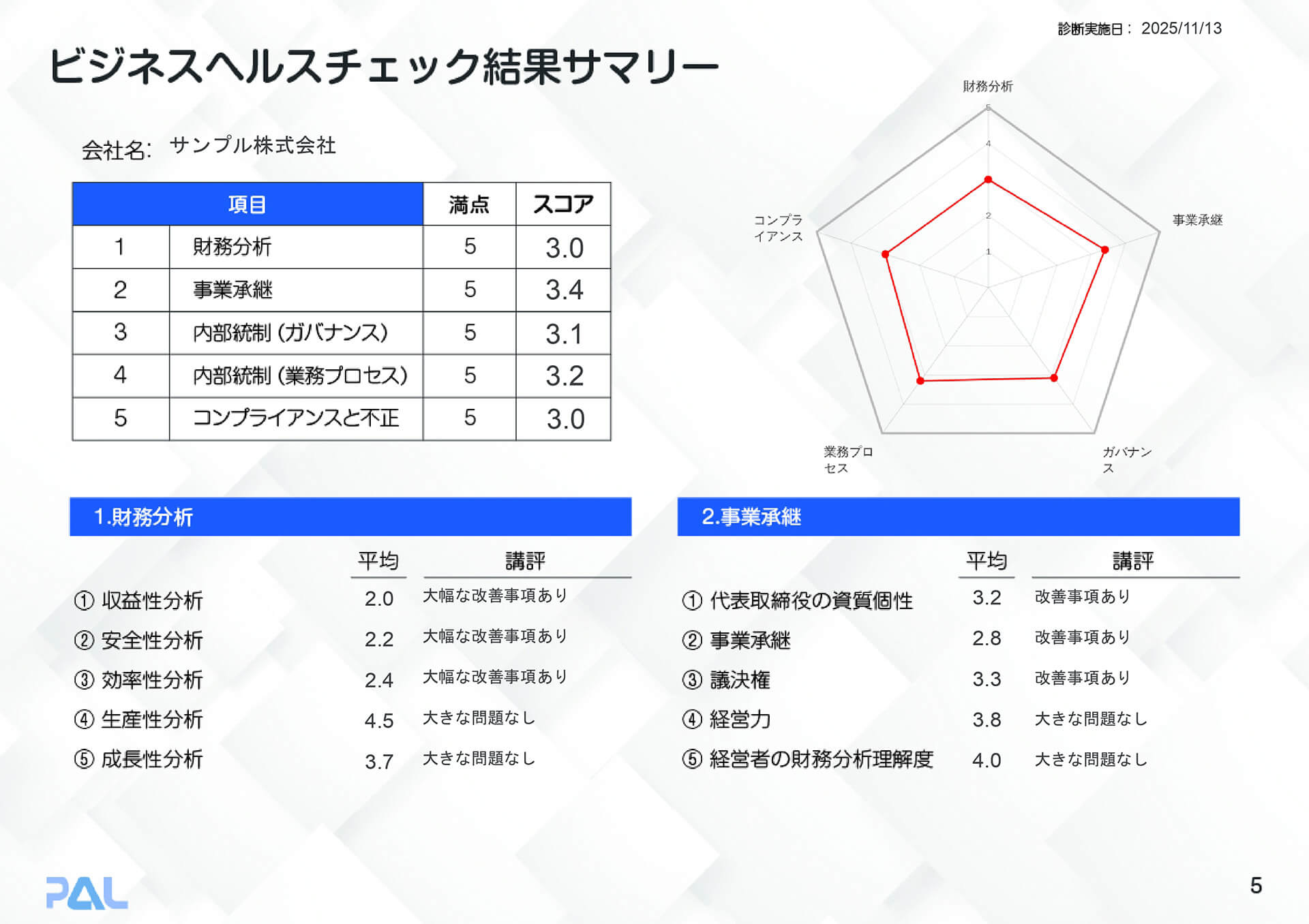 ビジネスヘルスチェックのレポートサンプル